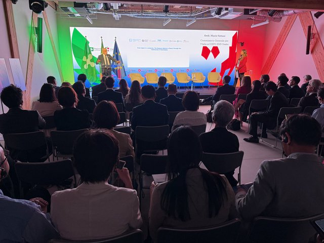 この会議は、2025年大阪・関西万博のロンバルディア特集ウイーク(1週間)の一環として開催され、2025年大阪・関西万博のイタリア政府代表(Commissioner General)であるマリオ・バッターニ(Mario Vattani)氏とロンバルディア州経済開発担当議員Guido Guidesi氏によって開会されました。