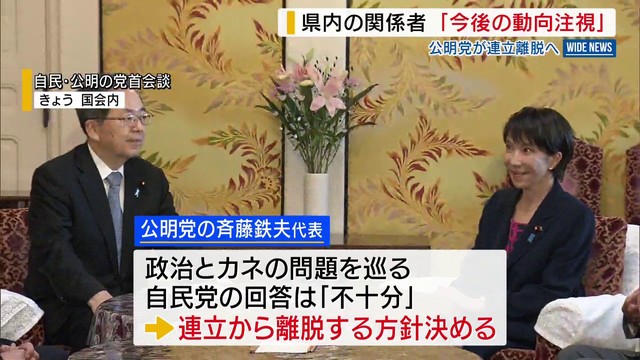 【写真を見る】公明党が連立離脱へ 県内関係者は「すぐに関係性は崩れない」「状況を見守るしかない」