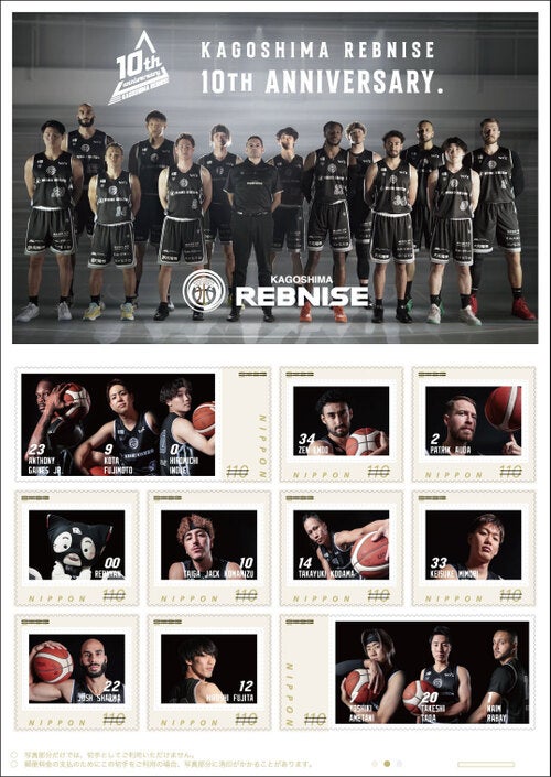 この度、鹿児島レブナイズでは、日本郵便株式会社九州支社と連携して鹿児島レブナイズのクラブ設立10周年を記念に作成したオリジナルフレーム切手の販売を開始することとなりましたのでお知らせいたします。なお、本フレーム切手の贈呈式もあわせて開催します。また、クラブ設立10周年を記念して小型印を作成いただきました。