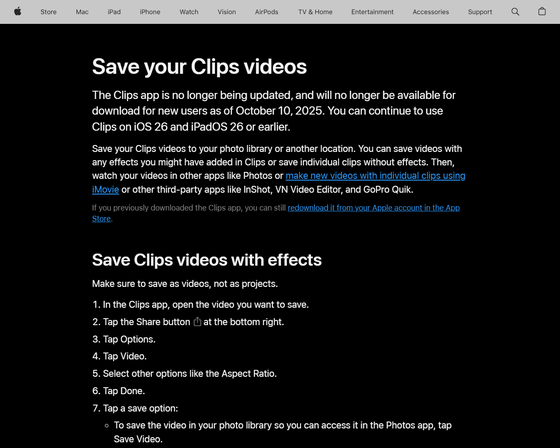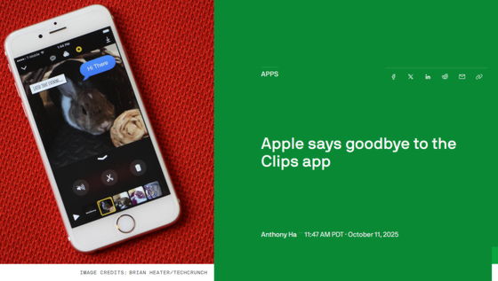 Appleが開発するモバイル向けの動画編集アプリである「Clips」のアップデートが終了し、現地時間の2025年10月10日をもって新規ユーザーがアプリをダウンロードできなくなりました。