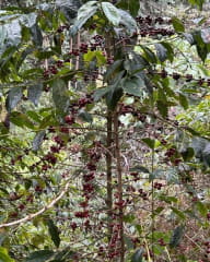 コーヒーチェリー(ティピカ種)アラビカ種の原種に近いといわれるティピカ種の下にロブスタ種を接ぎ木している状態
