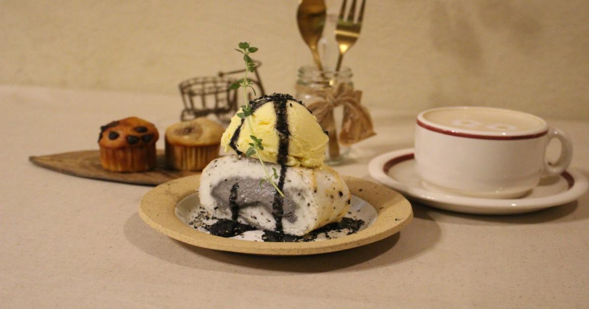 見た瞬間に「ずるい…!」と思わず声が出るかわいさと存在感を兼ね備えた「ごまロールケーキ」は、harimaの看板スイーツ。この一品を目当てに訪れるお客さんも多いとのこと。