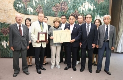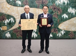 9月22日、「エイジレス・ライフ実践事例」及び「社会参加活動事例」における内閣府からの表章伝達式を開催し、「エイジレス章」を受章された淺田勝茂さんと、「社会参加章」を受章された「にしびわくわくサポーターズ」の皆様に、書状と記念楯をお渡ししました。