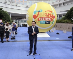 会場では、テニス体験や展示コーナーなど、楽しみながらテニスの魅力に触れられるブースのほか、テニスコートも設置されており、多くの人で賑わっていました。
