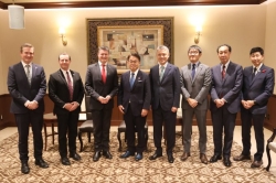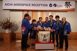 レセプションでは、名古屋市、愛知県と友好交流・相互協力に関する覚書を締結しているフランス・オクシタニー地域圏と韓国・慶尚南道、航空宇宙産業が集積するカナダ・ケベック州とマレーシア、経済産業省、国土交通省の皆様と、鏡開きを行いました。