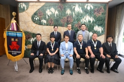 10月8日、8月28日から9月8日まで東京ドームで開催された「第96回都市対抗野球大会」で優勝した、春日井市の王子硬式野球部の皆さんが、結果報告におみえになりました。
