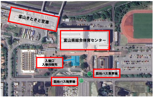 今節の富山県総合体育センター開催時の臨時バスや周辺の駐車場情報は、決定次第、お知らせいたします。