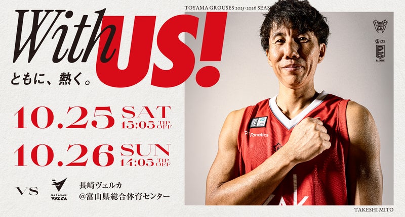3-4Q間は、ミタスト光ケーブルテレビ富山presentsバズーカタイムとして、選手サイン入りレプリカユニフォームを3名様にプレゼント!ご自身のお座席でアピールしてください。(※写真は2024-25シーズン)