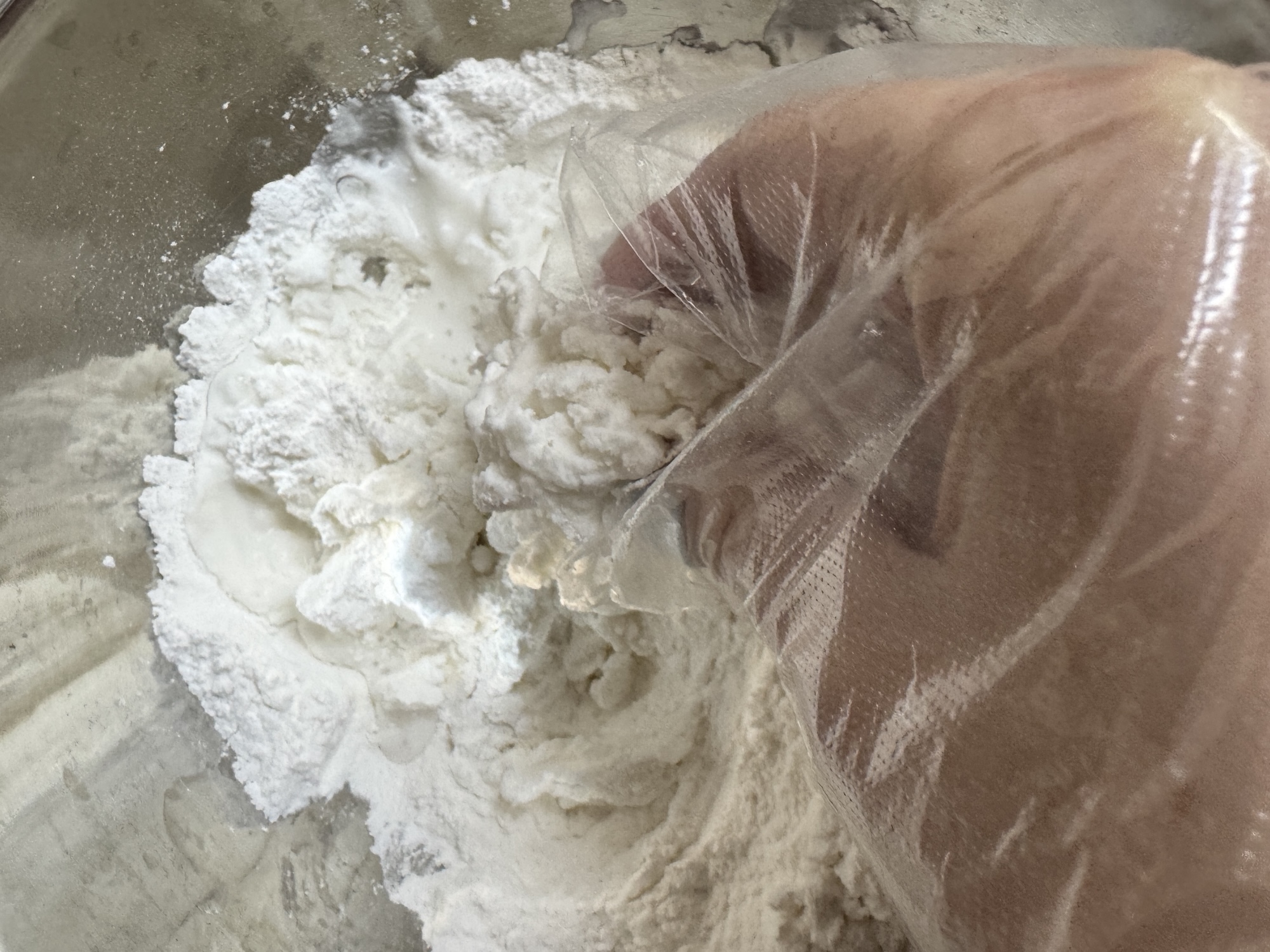 粉と水をボウルに入れてコネコネ……