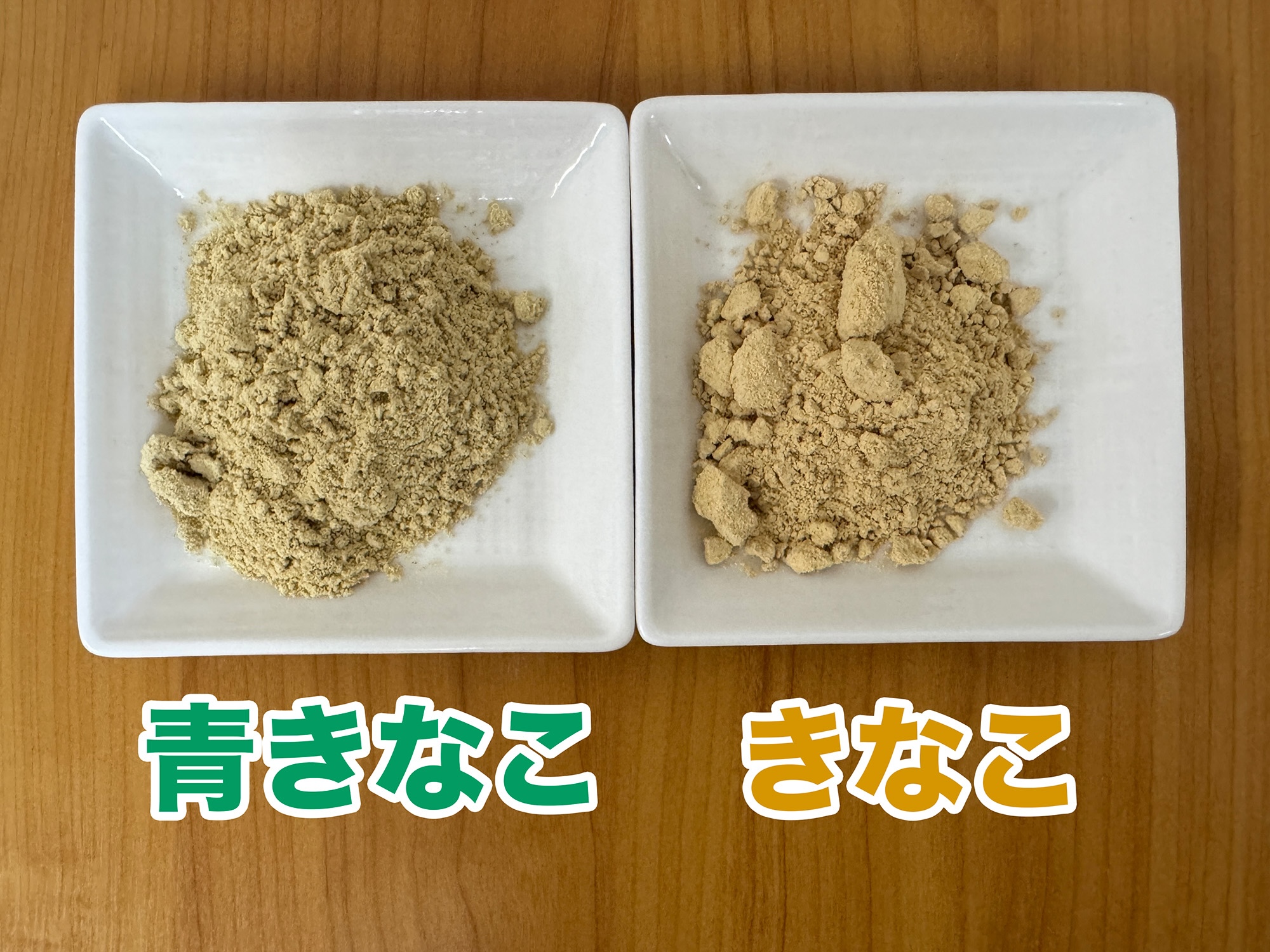 ……おそらく量産型のきなこに慣れ親しみすぎた2人の舌は、不幸にも量産型きなこにテイストが近い『白きなこ』のほうを「おいしい」と判断したらしかった。え、かわいそう! 『青豆粉』のおいしさを理解している身の上がありがたくて仕方がない!
