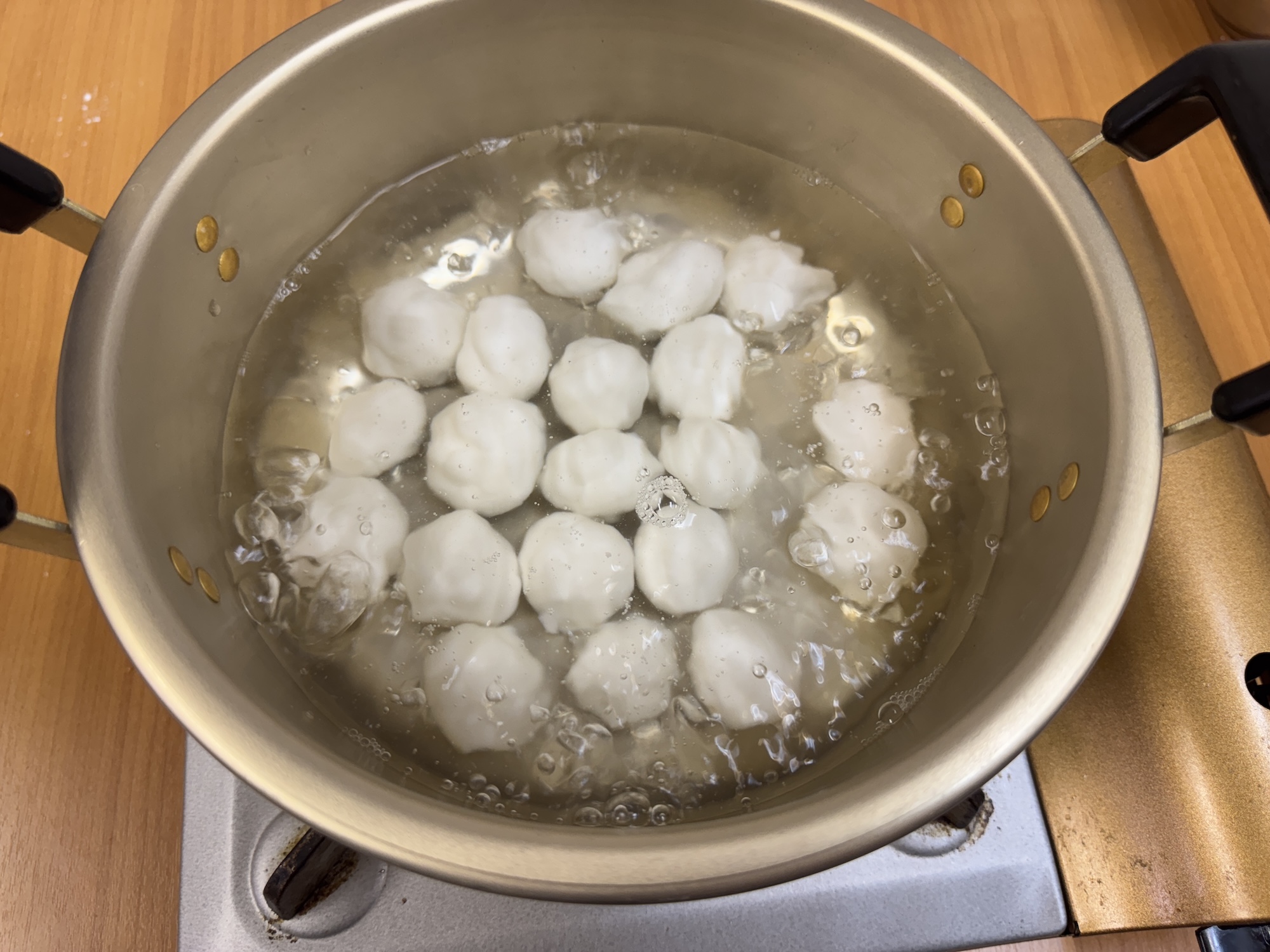 ゆで時間については「浮きあがったら」と記載されている。だんごが水に浮くなんてこと、ある?