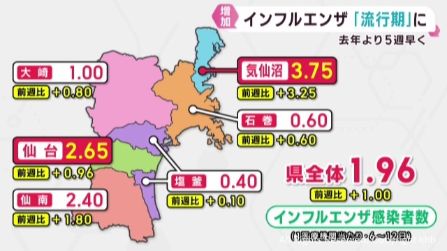 インフルエンザ 宮城県で流行シーズン入り 1医療機関の感染者1.96人(khb東日本放送) – Yahoo!ニュース Yahoo!ニュースインフルエンザ、兵庫でも流行期入り 昨季より3週間早く 予防接種や手洗い、マスクの着用呼びかけ 神戸新聞寒暖差や人の移動が影響か インフルエンザ早くも流行 小中学校で学級閉鎖も 感染対策呼びかけ 日テレNEWS NNN過去10年で2番目に早い発表…愛知県でインフルエンザの“流行入り” 三重県は9/17 岐阜県も10/9に au Webポータル宮城県内でインフルエンザ流行期に突入 手洗いやうがいなどの感染症対策を呼びかけ TBS NEWS DIG