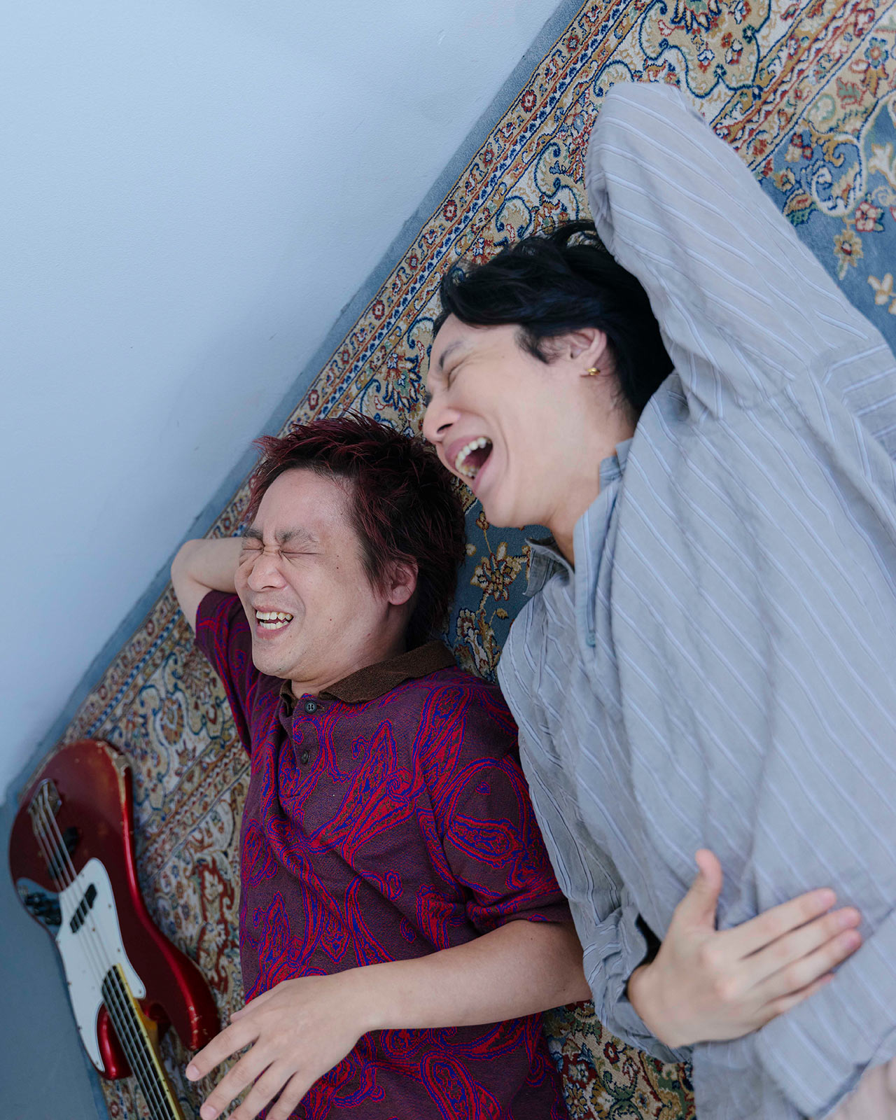 (左)ベースの長谷川プリティ敬祐さん、(右)ボーカル・ギターの牧達弥さん。ふたりの音楽観を育んだ大分での青春時代