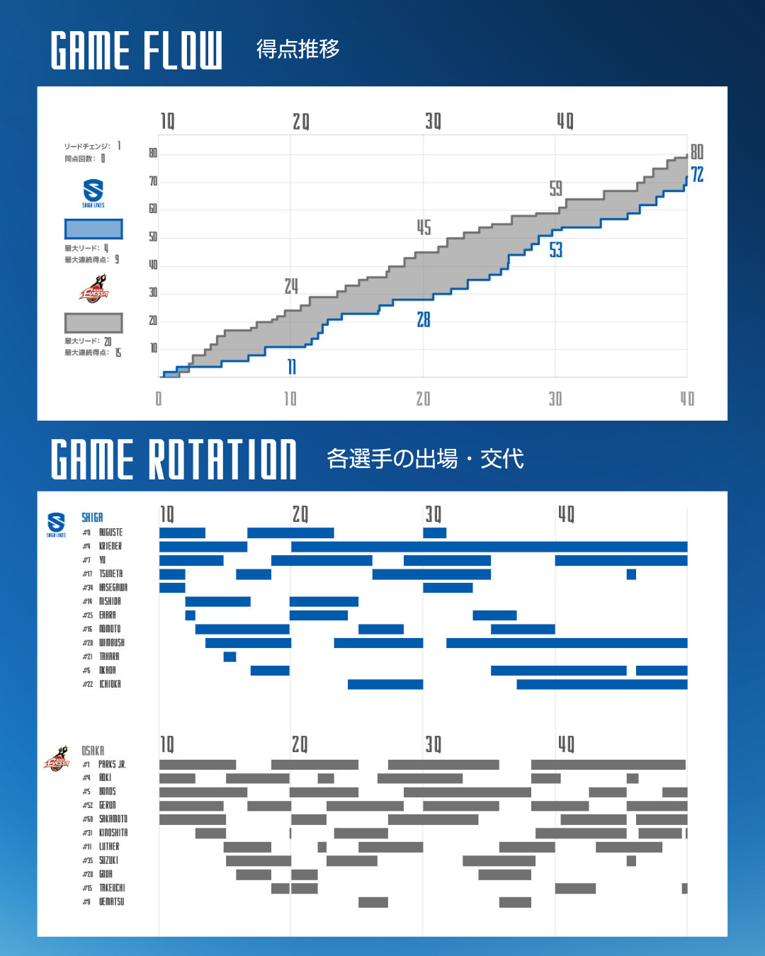 試合終了後の選手談話は滋賀レイクス公式noteの「AFTER GAME」で公開していきます。