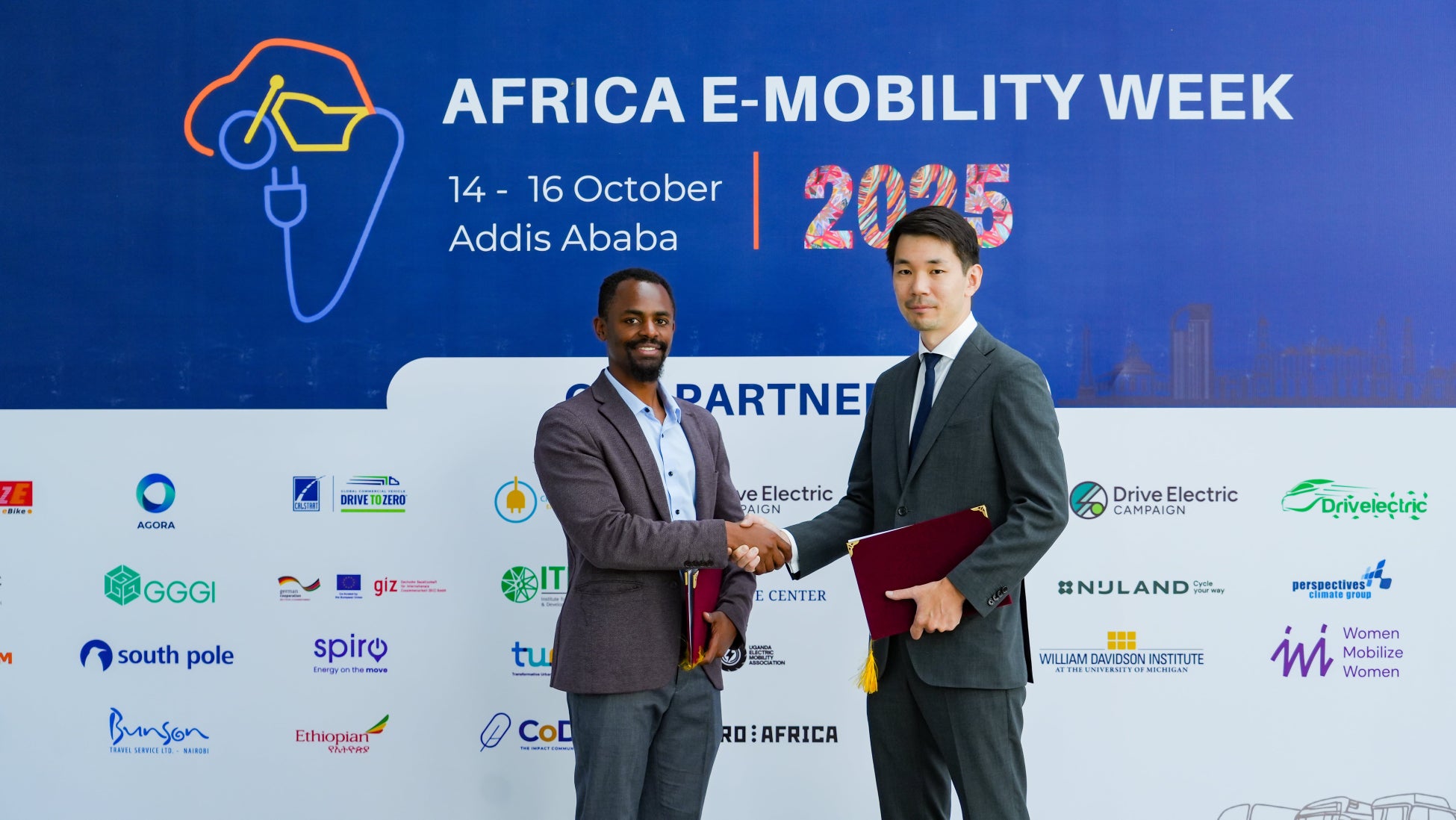 アフリカに特化した日本のベンチャーキャピタルおよびコンサルティング企業である株式会社Double Feather Partners(本社:東京都渋谷区、代表取締役:武藤康平、以下「DFP」)と、アフリカ全域で続可能なモビリティソリューションの普及を促進するAfrica E-Mobility Alliance(本部:ケニア・ナイロビ、Managing Director:Warren Ondanje、以下「AfEMA」)は、エチオピア・アディスアベバにて開催されたAfrica E-Mobility Week2025に合わせて、戦略的連携に関する覚書(MOU)を締結しました。両者は、本連携を通じて、AfEMAのアフリカにおける持続可能なモビリティ分野での専門性とネットワーク、DFPによる現地スタートアップ企業への成長支援やグローバル企業との協業機会の創出を組み合わせ、アフリカ地域におけるクリーンな次世代モビリティエコシステムの構築を目指してまいります。