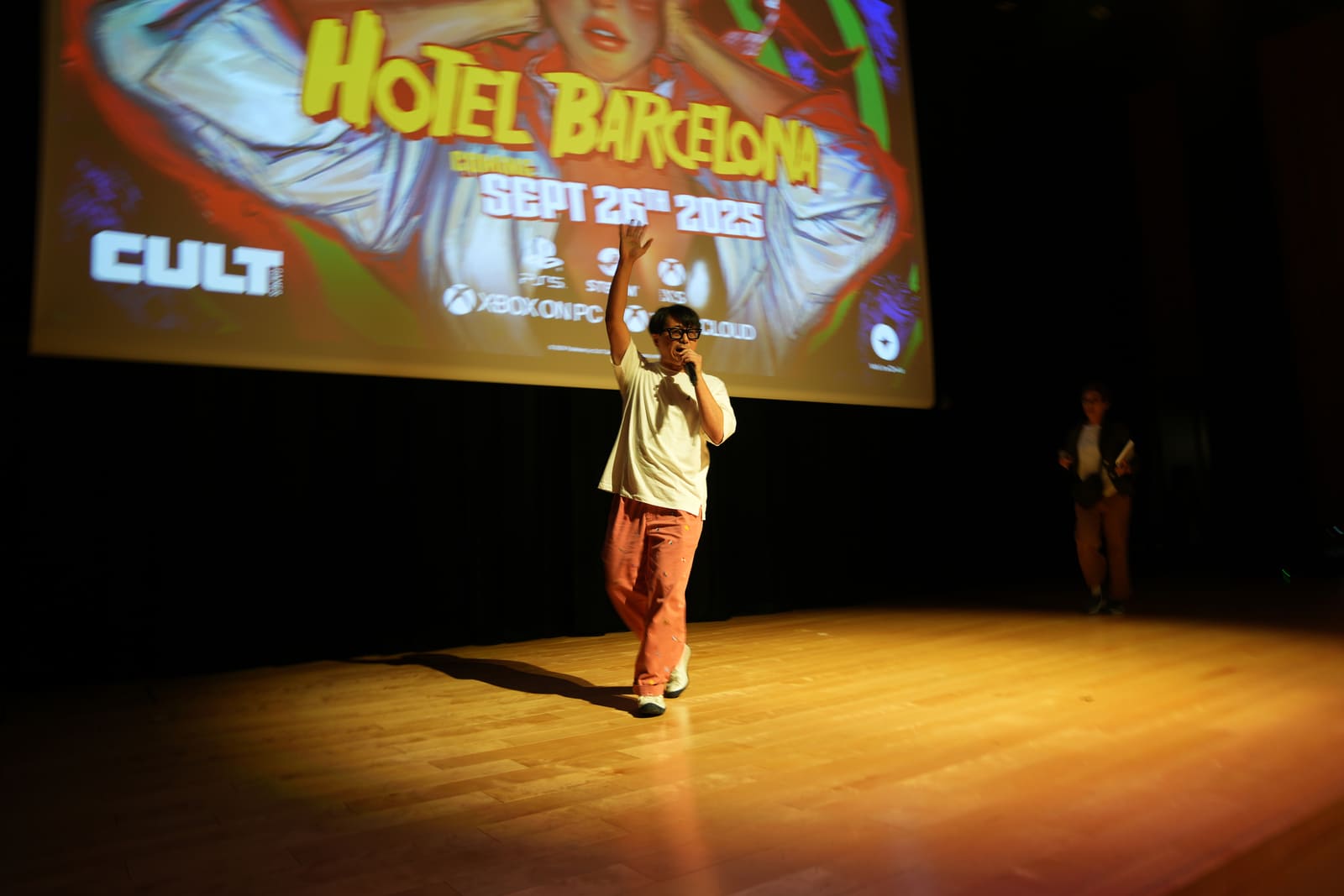 本イベントによってあらたな繋がりが生まれ、新規タイトルが生まれているという話を伺ったところで、SWERYの名で知られる、ゲームクリエイターの末弘秀孝氏が、自身の手がける最新作『HOTEL BARCELONA(ホテル バルセロナ)』のトレイラーとともに登壇。末弘秀孝氏は「ゲームのタイトルはとても重要」と話し、「タイトルに地名が入っていたら、その地域が呼んでくれて、出張としてそこに行く機会があるかもしれない(笑)」と冗談交じりに語った。