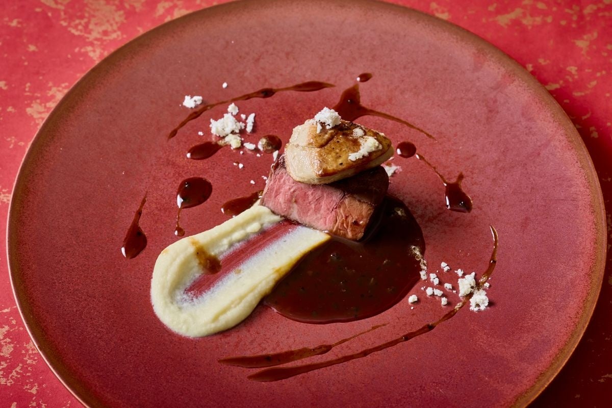 お一人一皿ずつ席での提供:厳選牛フィレ肉とフォアグラのポワレ ロッシーニ風(ディナーのみ)
