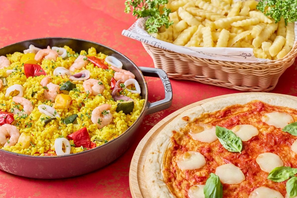 チーズケースで仕上げるトリュフリゾット/シーフードと彩り野菜のパエリア/あったか味噌煮込みうどん