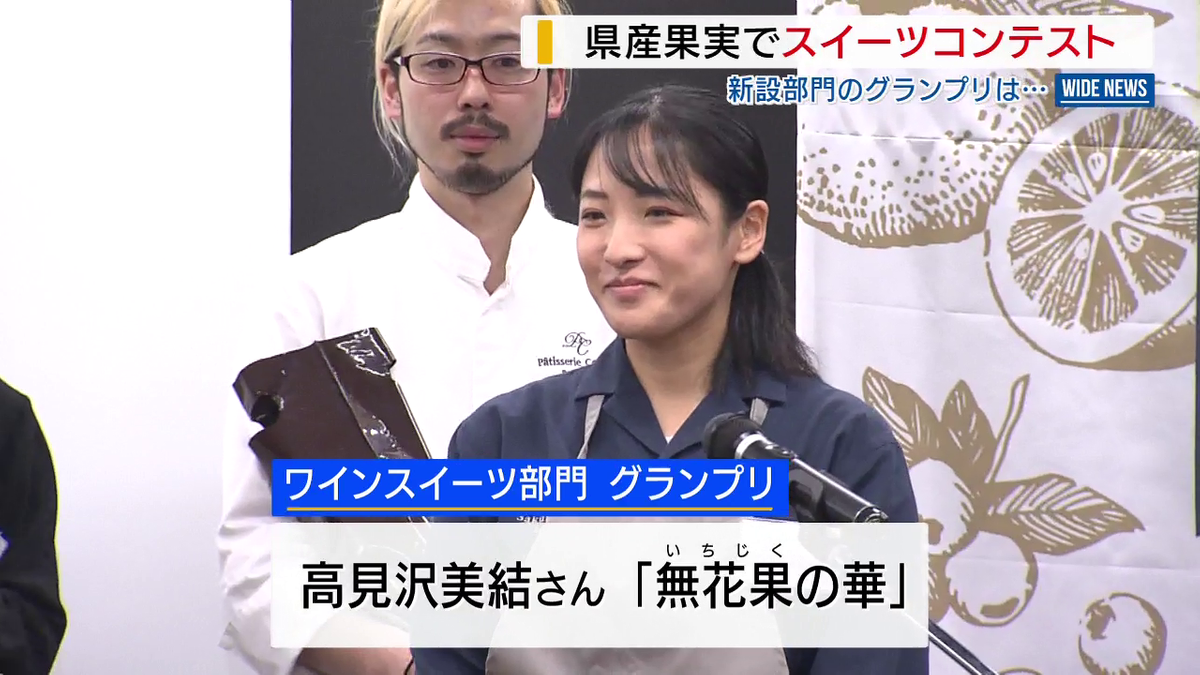 審査の結果、新設されたワインスイーツ部門では、高見沢美結さんが手がけたチョコレート菓子「無花果(いちじく)の華」が選ばれました。