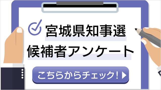 宮城県知事選挙の最新のニュースは、平日午後6:10から放送の「てれまさ」でお伝えしています。番組は放送後1週間見逃し配信もしています。
