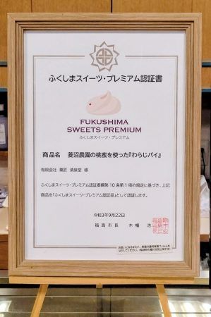 「ふくしまスイーツプレミアム認証品」認定書の写真