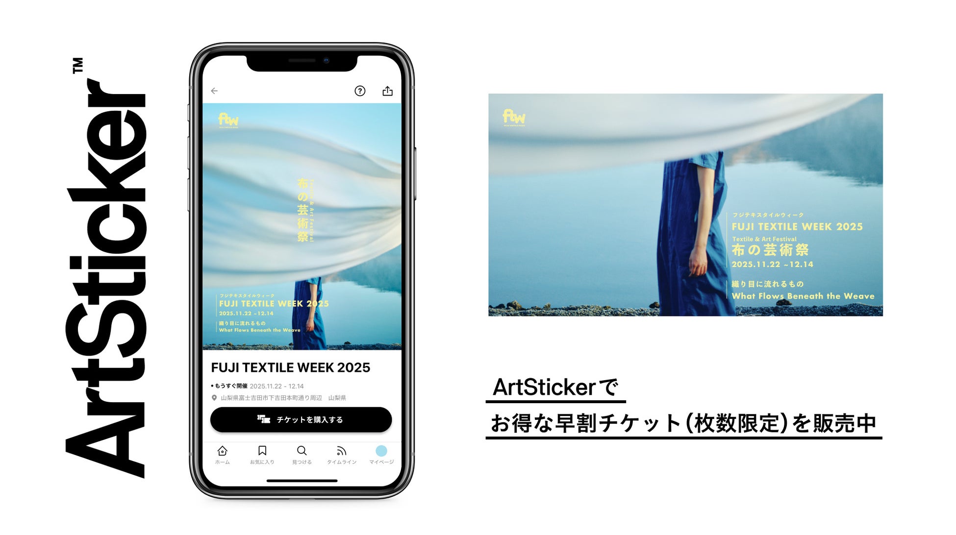 株式会社The Chain Museum(本社:東京都渋谷区、代表取締役:遠山正道、以下「The Chain Museum」)は、2025年11⽉22⽇(⼟)〜12⽉14⽇(⽇)の会期、山梨県富士吉田市下吉田本町通り周辺地域で開催される「FUJI TEXTILE WEEK 2025」にて、当社が運営するアート・コミュニケーションプラットフォーム「ArtSticker(アートスティッカー)」のチケット販売システムを導入開始いたしました。