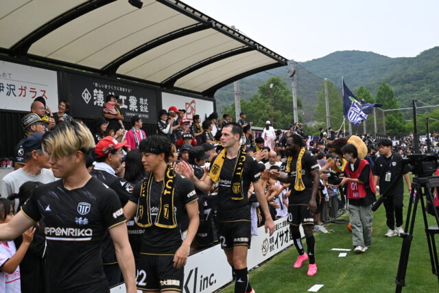 試合終了後、ハイタッチしながらスタジアムを周回します!