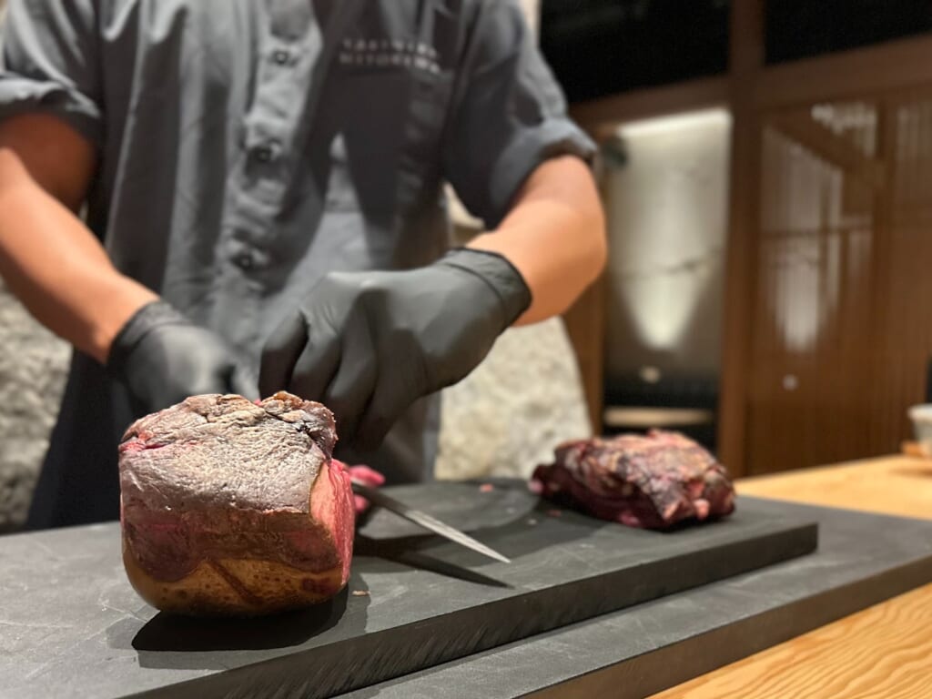 しかもカウンター席では、シェフがお肉をカットする様子を間近で見ることができます。部位ごとに丁寧に説明もしてくれるので、楽しさ倍増で贅沢なひとときでした。