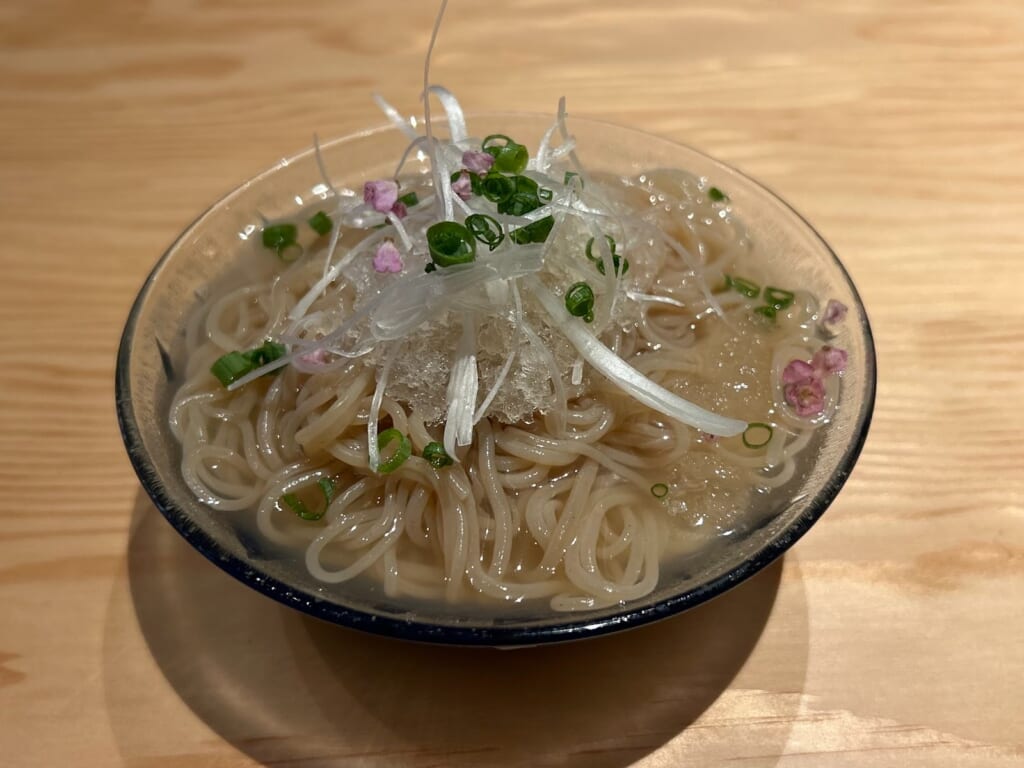入り口の足元には、香川県産の庵治石がさりげなく配置され、店内カウンターの目の前にも同じ石が使われています。思わず、「すごい!」と言葉が出てしまうほど圧倒的な存在感です。