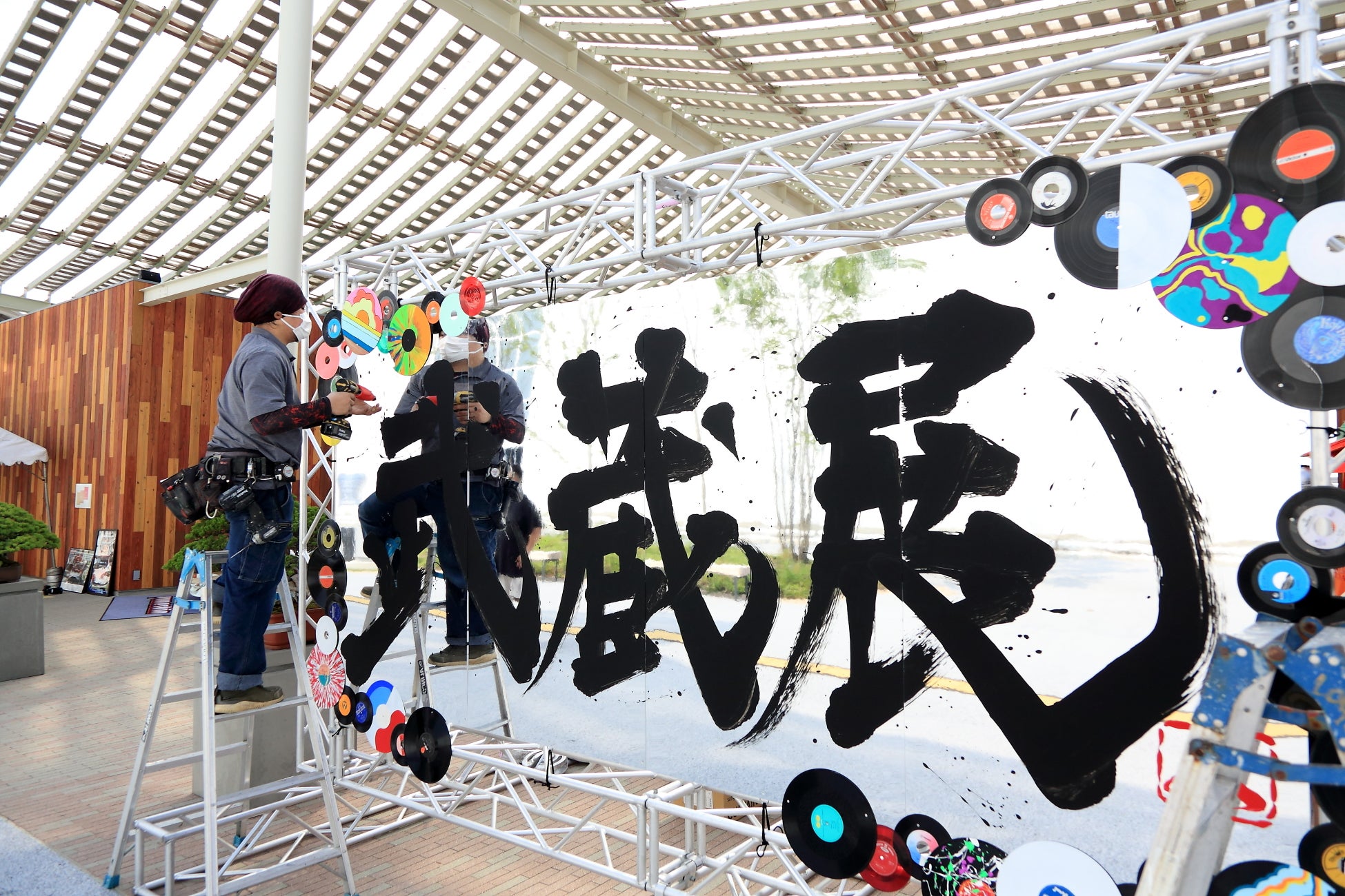 次に入ったのはテントや看板を造る会社。テントとひと口に言っても店舗の軒先だけではなく、建物の中に置く大きなテント倉庫や、球場のドーム、大型構造物なども手掛け、面白くなって夢中で仕事をした。乃村工藝社やつむら工芸の下請け企業だったため、ユニバーサルスタジオジャパンのスパイダーマンのセットを造ったり、当時世界最大級と言われたクリスマスツリーを組んだり、2004年の浜名湖花博、2005年の愛・地球博でも仕事をする機会に恵まれた。当時の経験が今回の『世界のMUSASHI個展』でも生かされた。