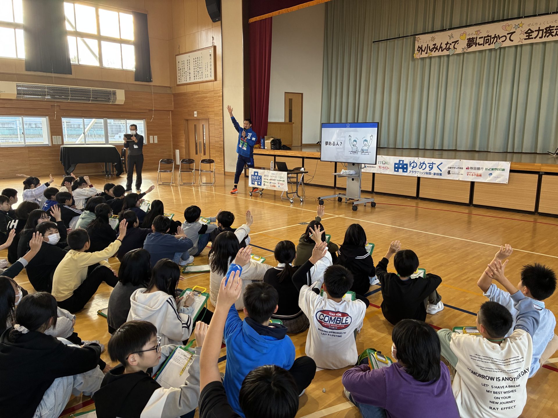 11月14日(金)、秋田市立外旭川小学校の6年生76名を対象に、GK1 山田元気選手が「ゆめすく」を行いました。