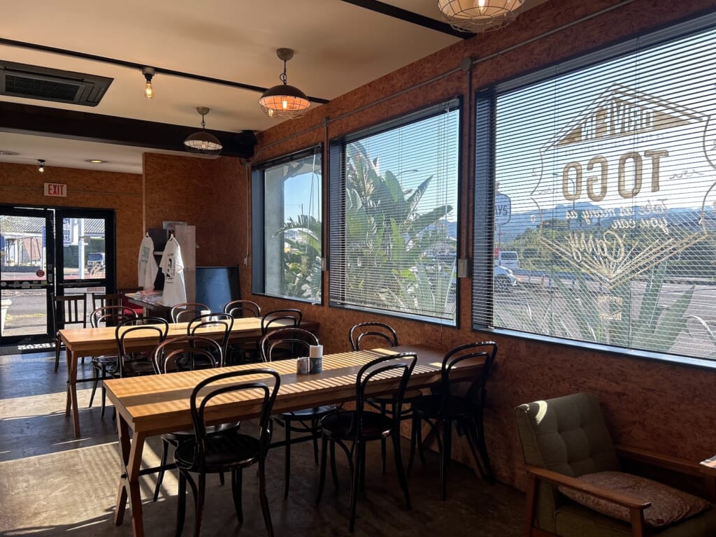 大きな窓から差し込む光が店内を明るく照らし、心地よい雰囲気をつくり出しています。天気のいい日は、特におすすめです◎
