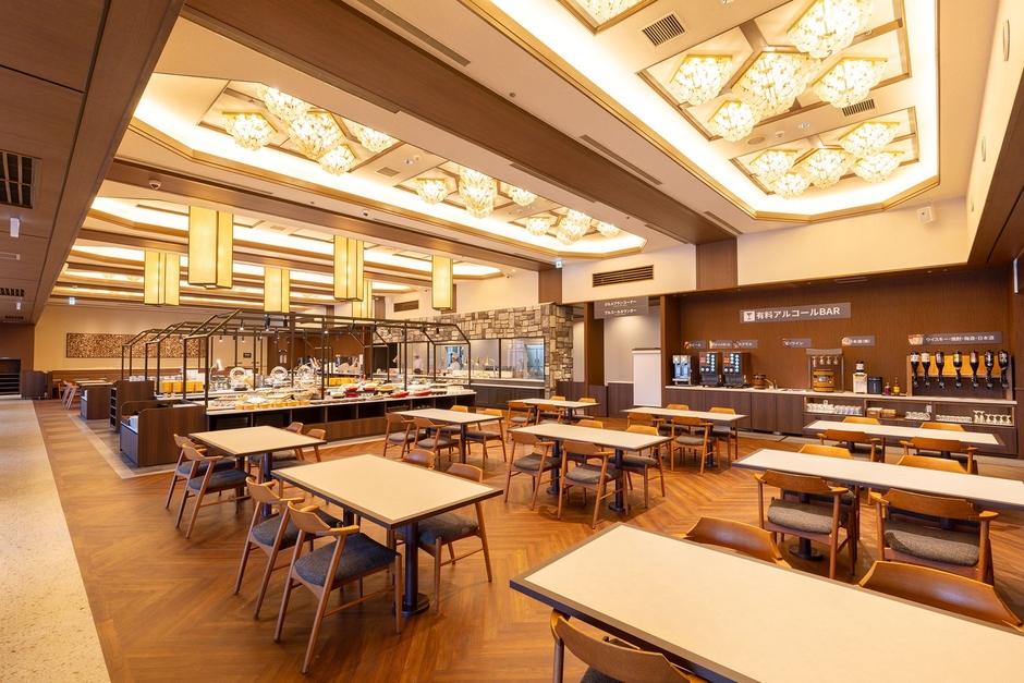 4階フロアのレストランを全面改装。木のぬくもりが感じられ、自然を感じられる食事スペースへ生まれ変わりました。夕朝食もPremiumシリーズへアップグレードし、豪華メニューやご当地グルメを豊富にご用意いたします。