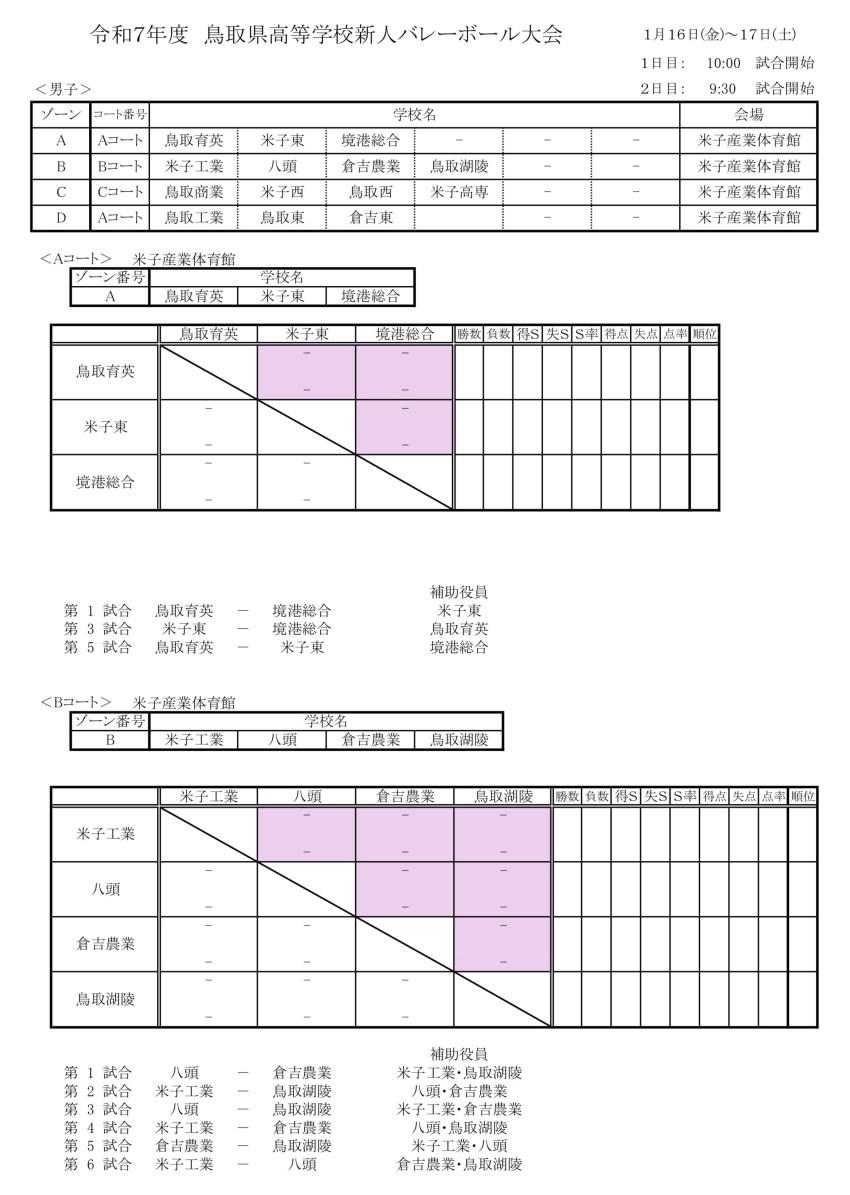 鳥取県で『令和7年度 県高等学校新人バレーボール大会』男子試合が始まります。