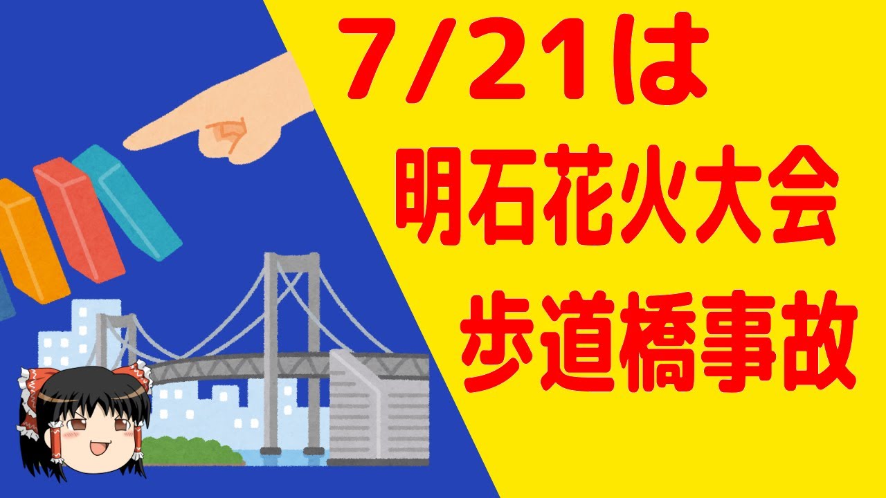 今日は7月21日。今日は何の日?明石花火大会歩道橋事故の日です。 このチャンネルは今日起こった事を簡潔に紹介していきます!! ツイッターはこちらから→https://twitter.com/yukkuri_today #ゆっくり解説 #ゆっくり #事故 JapanJapan Breaking NewsJapan NewsJapan Todayゆっくりゆっくり解説事件事故兵庫明石明石歩道橋事故歩道花火 WACOCA: People, Life, Style.