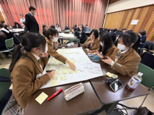 全体のまとめとして、多様な人々が共生できる地域社会や学校を創るために、自分たちやその周りで実践できるアプローチを、学校ごとにグループに分かれて考えました。各グループでは、講義での学びを踏まえ、具体的な課題や解決策について活発な意見交換が行われました。例えば、言語の壁を解消するために、日常の身近な場に「やさしい日本語」を広めるプランや、多言語対応の案内アプリを開発するアイデアが出されました。また、交流の場を創り出すアクションとして、高校生が主催する多国籍料理フェスやスポーツ大会の開催など、独創的なプランが作成されました。最後に、各グループが作成したアクションプランの発表を行いました。どのグループも、高校生として今何ができるかを真剣に考え、具体的なステップを発表しました。今回のプログラムを通して学びと経験を得た高校生が、持続可能な社会の創り手として、学校や地域など、さまざまな場所でアクションを起こしていくことを期待しています!