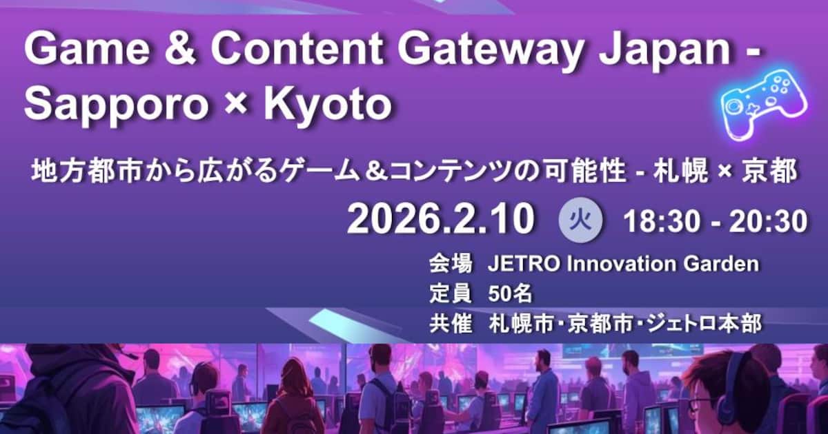 このたび、札幌市・京都市・ジェトロ本部の共催にて、コンテンツ・ゲーム業界の海外企業の皆様を対象としたイベントを開催します。