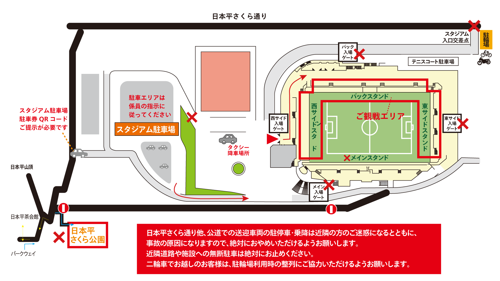 ・来場者の入退場は西サイドスタンドゲート(第一ゲート)のみ