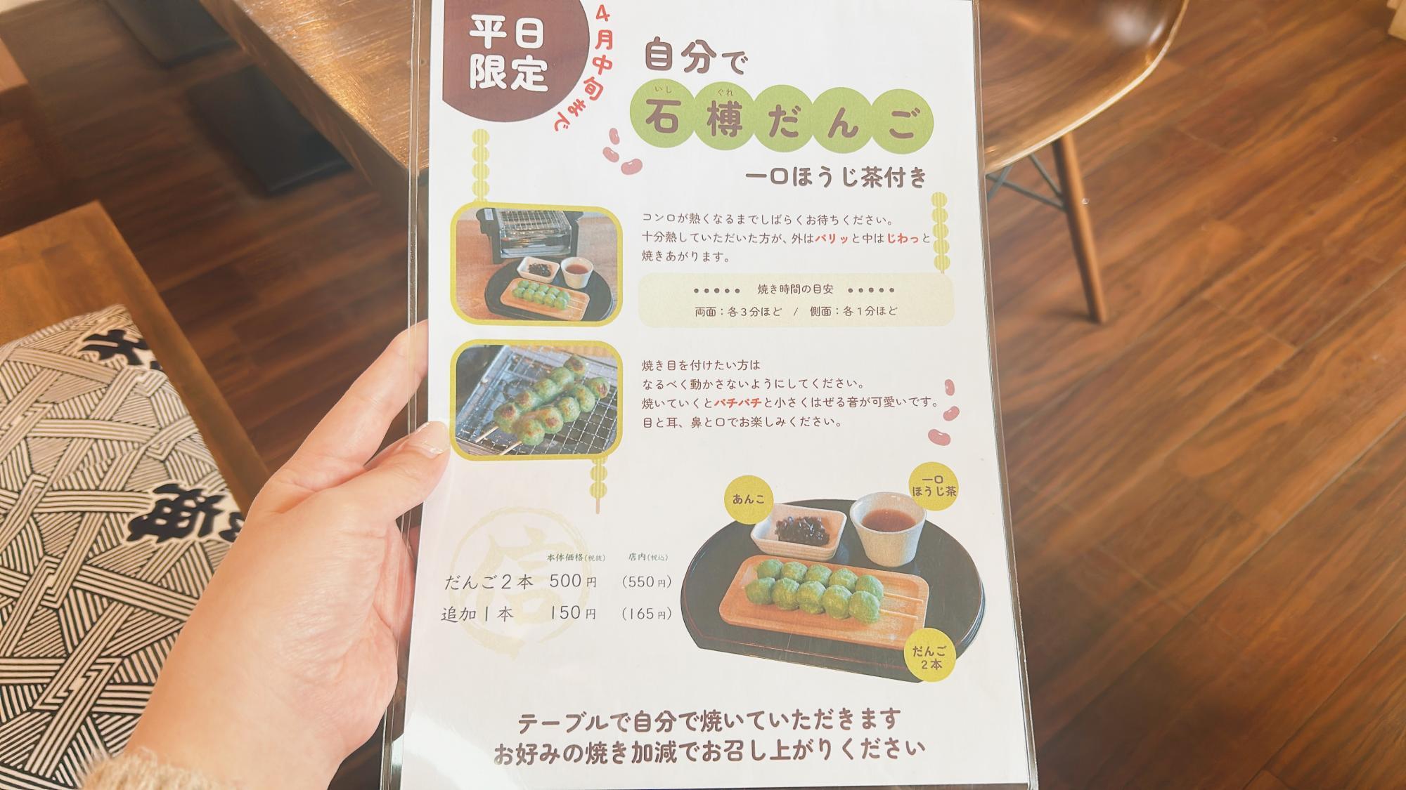 4月中旬ごろまでの期間限定、平日限定の石榑だんごが始まっています。