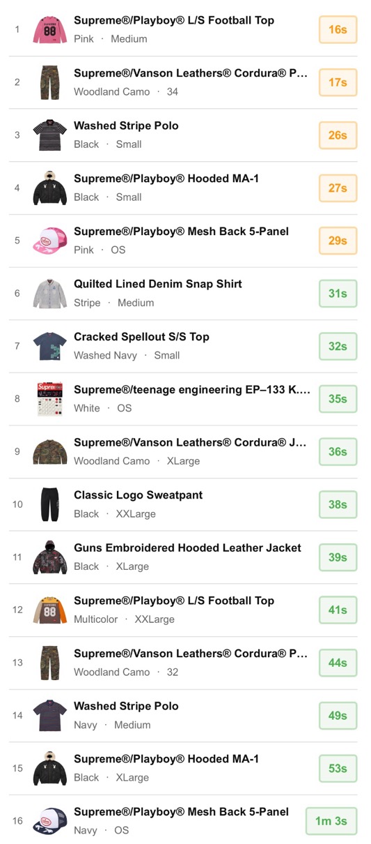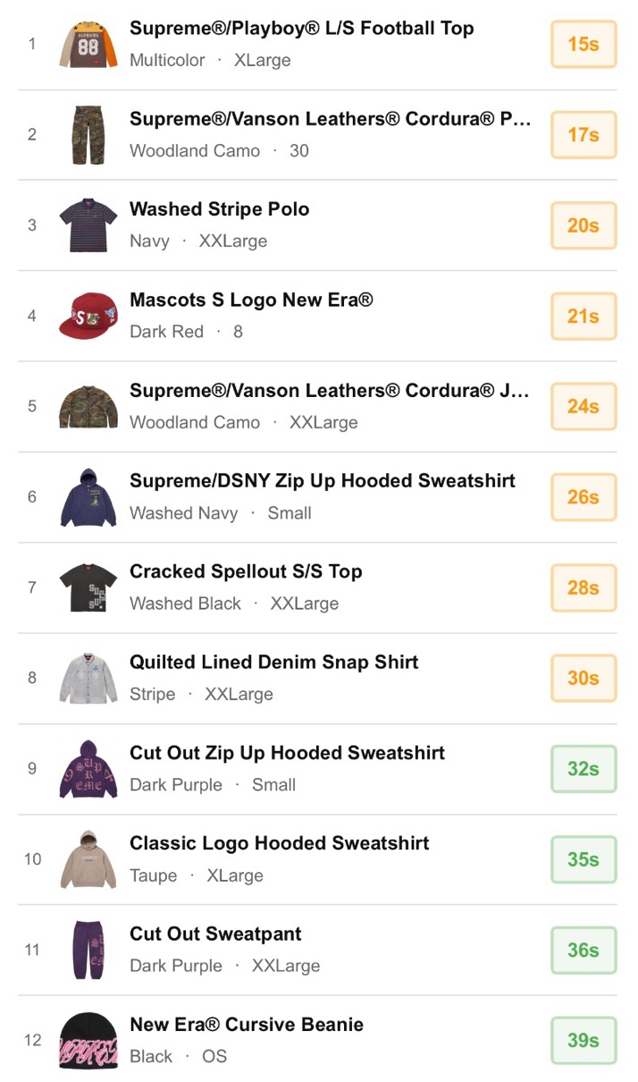 シュプリーム 2026年春夏コレクション WEEK3 海外オンラインの完売スピードランキングが公開。【2026SS】