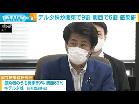 国立感染症研究所は、新型コロナウイルスの感染者が8月初旬の時点で関東の9割、関西の6割で感染力の強いデルタ株に置き換わったとする推計を発表しました。