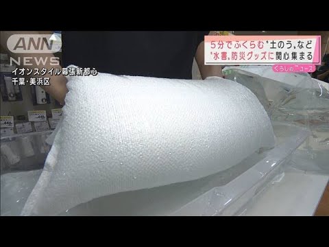 水を吸わせると5分で膨らむ簡易式の土嚢(どのう)や車の中から窓ガラスを割ることができる脱出用のハンマーなどが売れているということです。