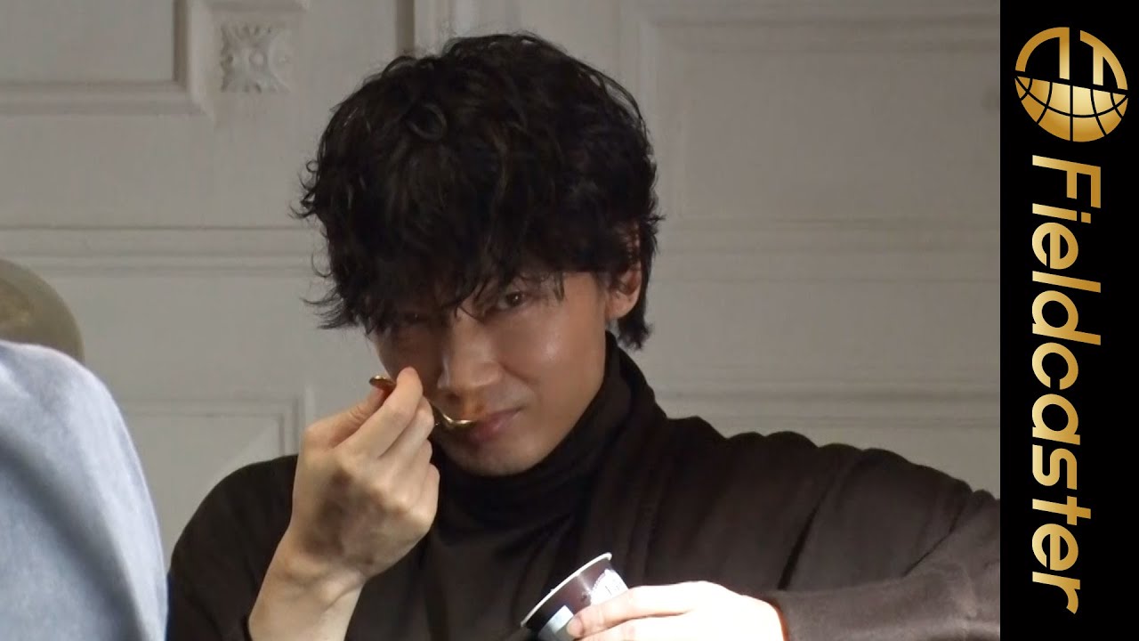 色味の深い茶色コーデで登場した綾野さんは、「とにかく食べ続けます」とにっこり笑顔。今日の撮影をとても心待ちにしていた様子でしたが、実際に現場で演技内容について監督とコミュニケーションを図る綾野さんの表情は真剣そのものでした。