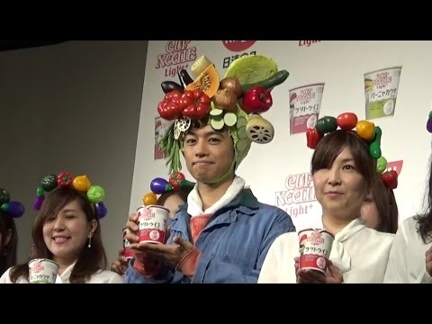 俳優の斎藤工が18日、都内で行われた日清食品『カップヌードルライトプラス』のテレビCM発表会に出席。CMで披露した“ベジヘッド”をかぶった農夫姿で登場し、多くのフラッシュを浴びた。