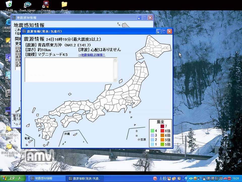 投稿者の設定ミスで震度速報が発表された後からの録画。