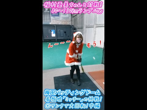 梅田バッティングドーム5番打席の稲村亜美ちゃん。80/100/120km。今回はスピードランダム設定で当店看板娘のミッチーが挑戦!