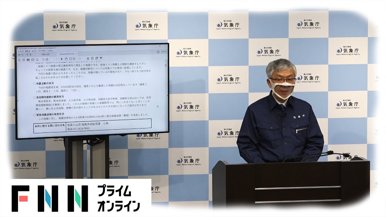1月22日午前1時8分、大分県・宮崎県で震度5強の地震を観測した。
