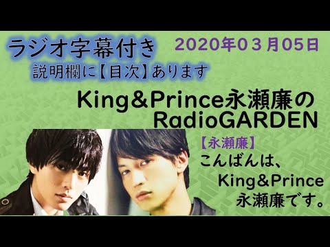 キンプリ永瀬廉ラジオ『文字起こし』2020年03月05日放送日本語