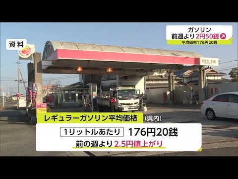 県内のレギュラーガソリンの平均価格は、176円20銭と前の週より2円50銭高く大幅な値上がりとなりました。