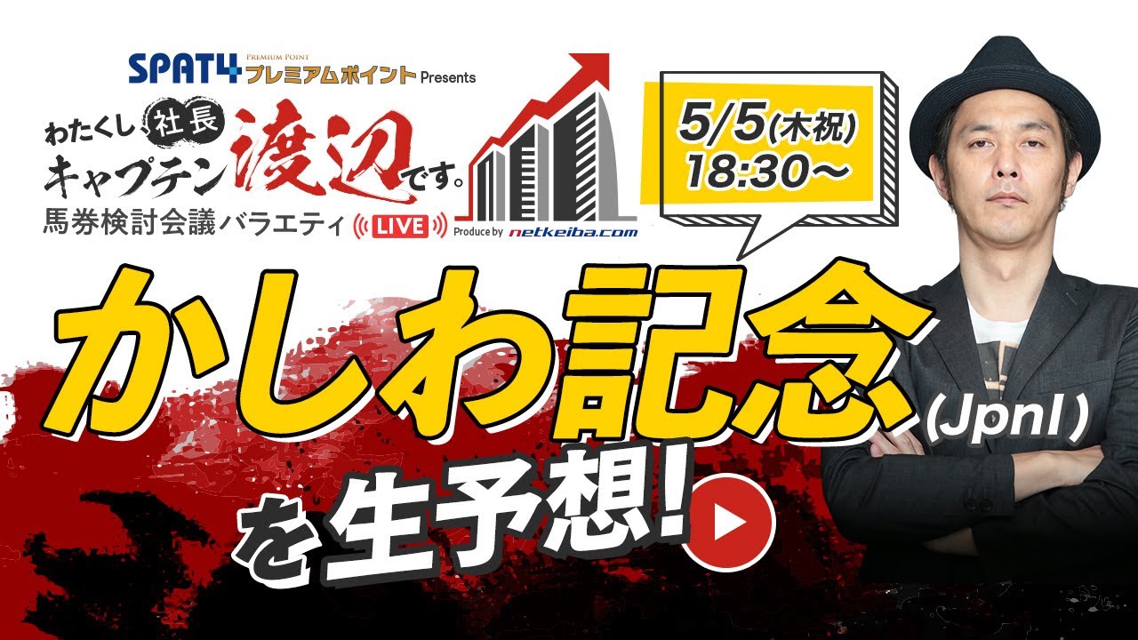 人気中継番組「ガチすぱ!」が「馬券検討バラエティ『わたくし、社長キャプテン渡辺です。』」と名前を改めてリニューアル。今年はキャプテン渡辺を社長とした”会社”という設定で、その馬券成績(業績)アップを狙います!
